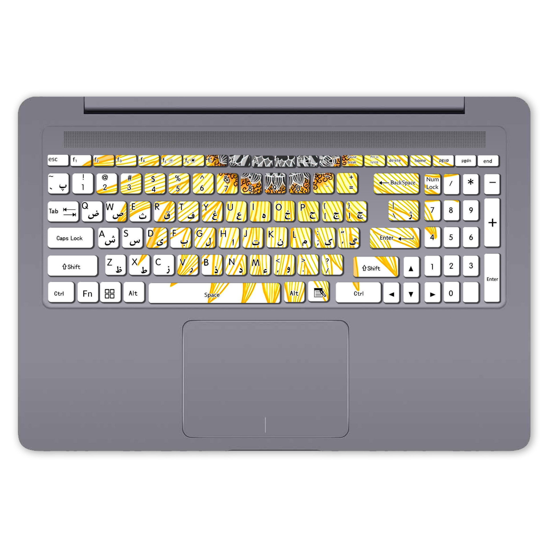 - قالب استیکر کیبورد ثابت است(مانند عکس محصول) و برای لپ تاپ های مختلف به صورت جداگانه طراحی نمی شود.
