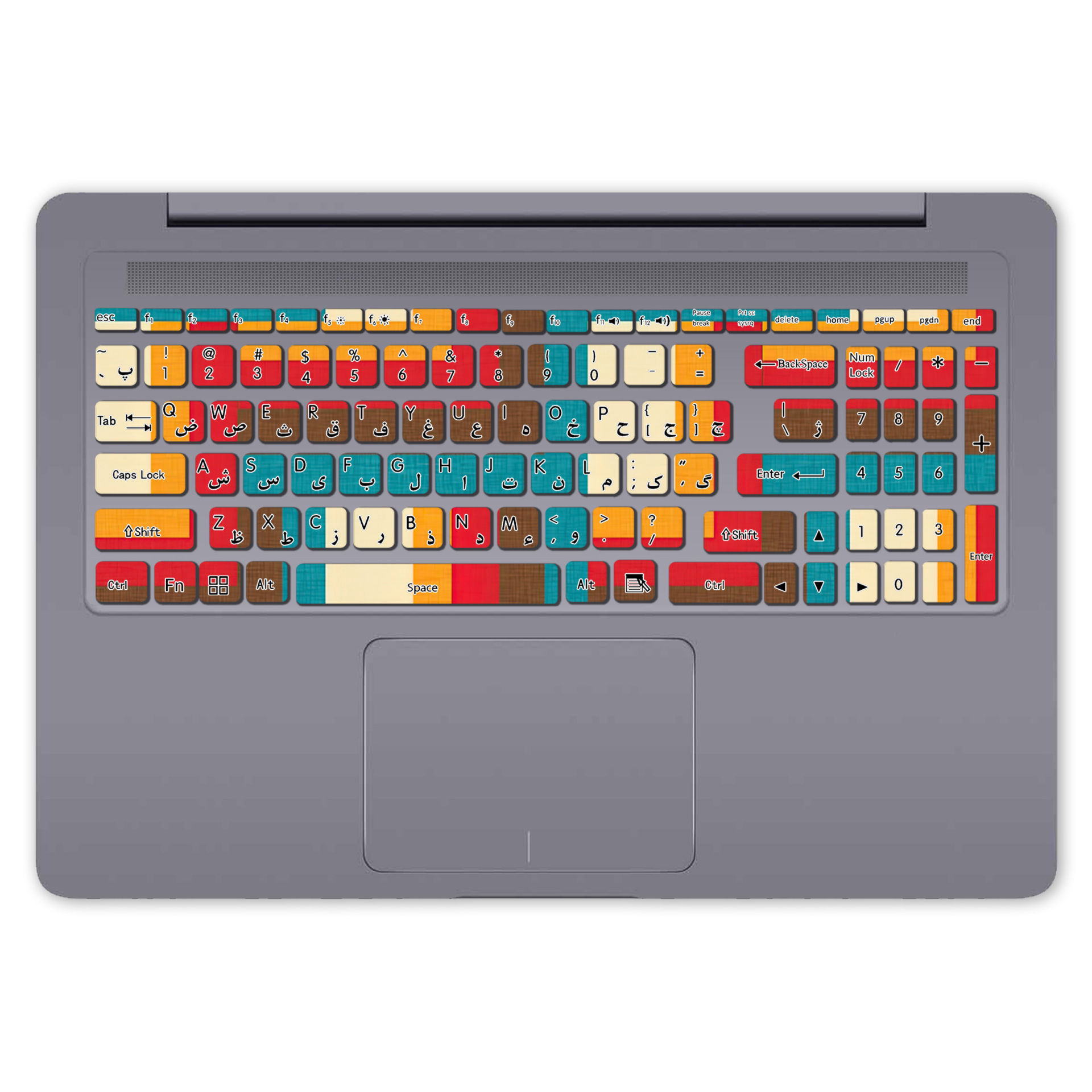 - قالب استیکر کیبورد ثابت است(مانند عکس محصول) و برای لپ تاپ های مختلف به صورت جداگانه طراحی نمی شود.